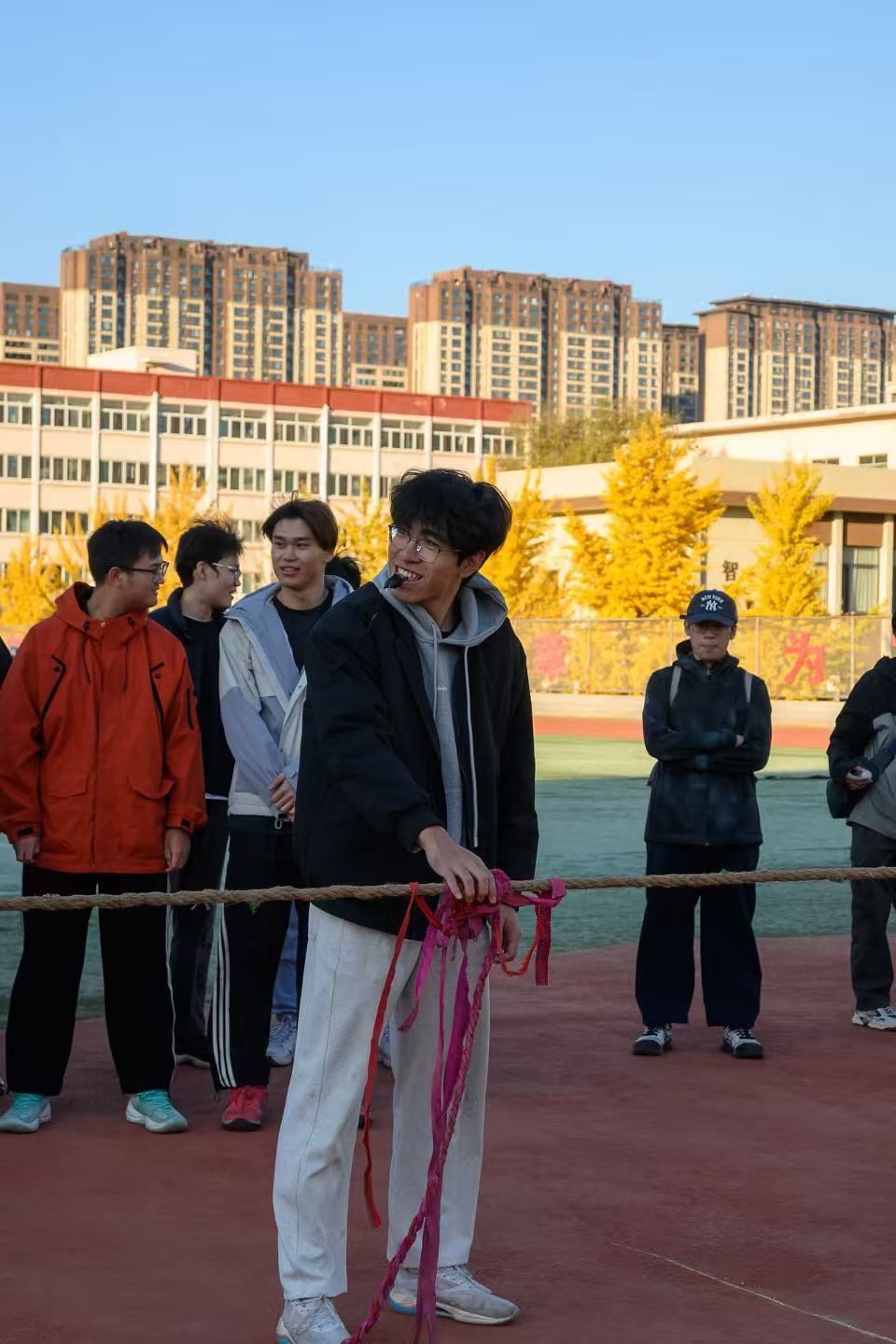 赛场上,无论是势均力敌的胶着对抗,还是“以少战多”的热血坚守,每一次麻绳的牵动都是班级力量的凝聚,每一声呐喊都是青春斗志的彰显。无论胜负,队员们紧握麻绳的双手、相互扶持的身影,都将“团结”二字诠释得淋漓尽致。